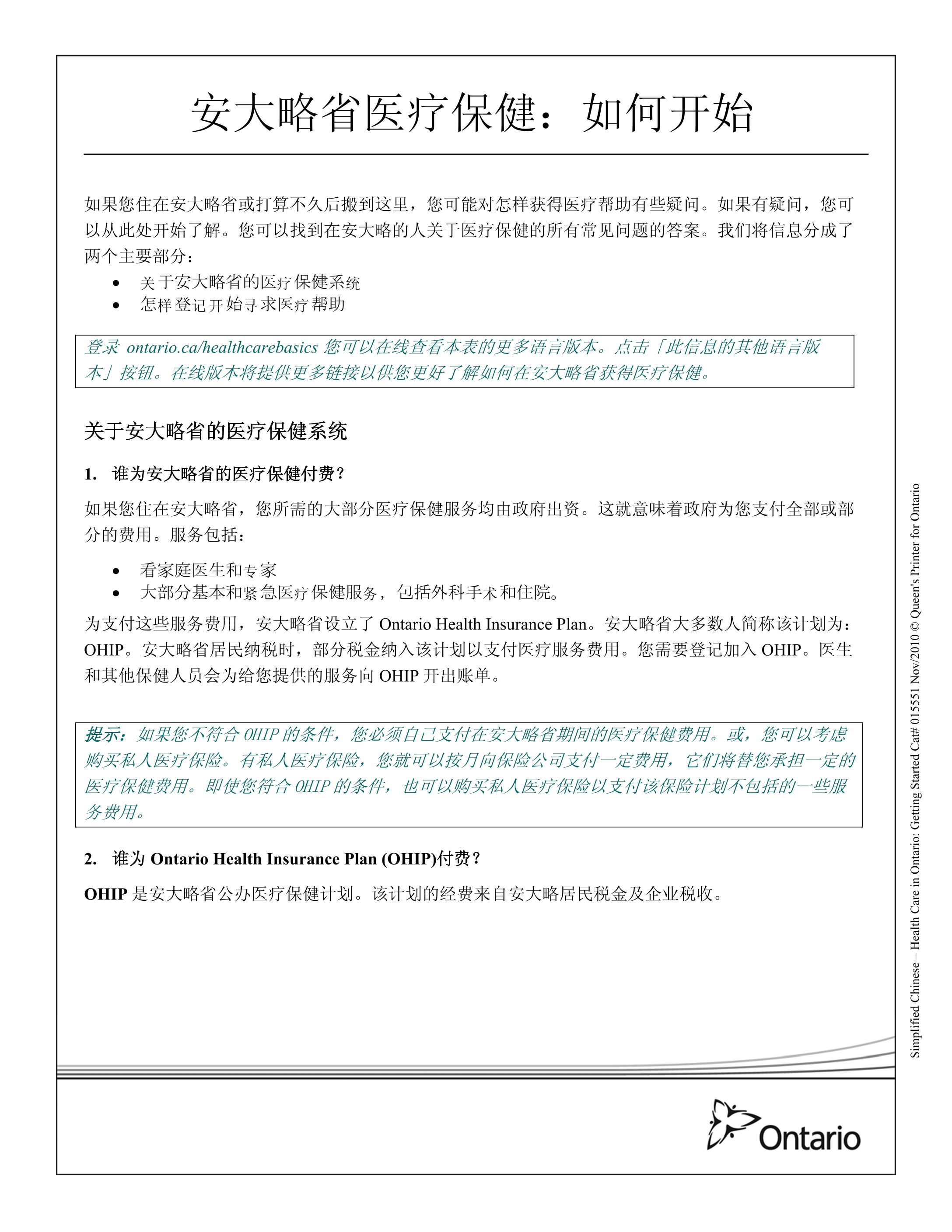 安省医疗保险办理指南
